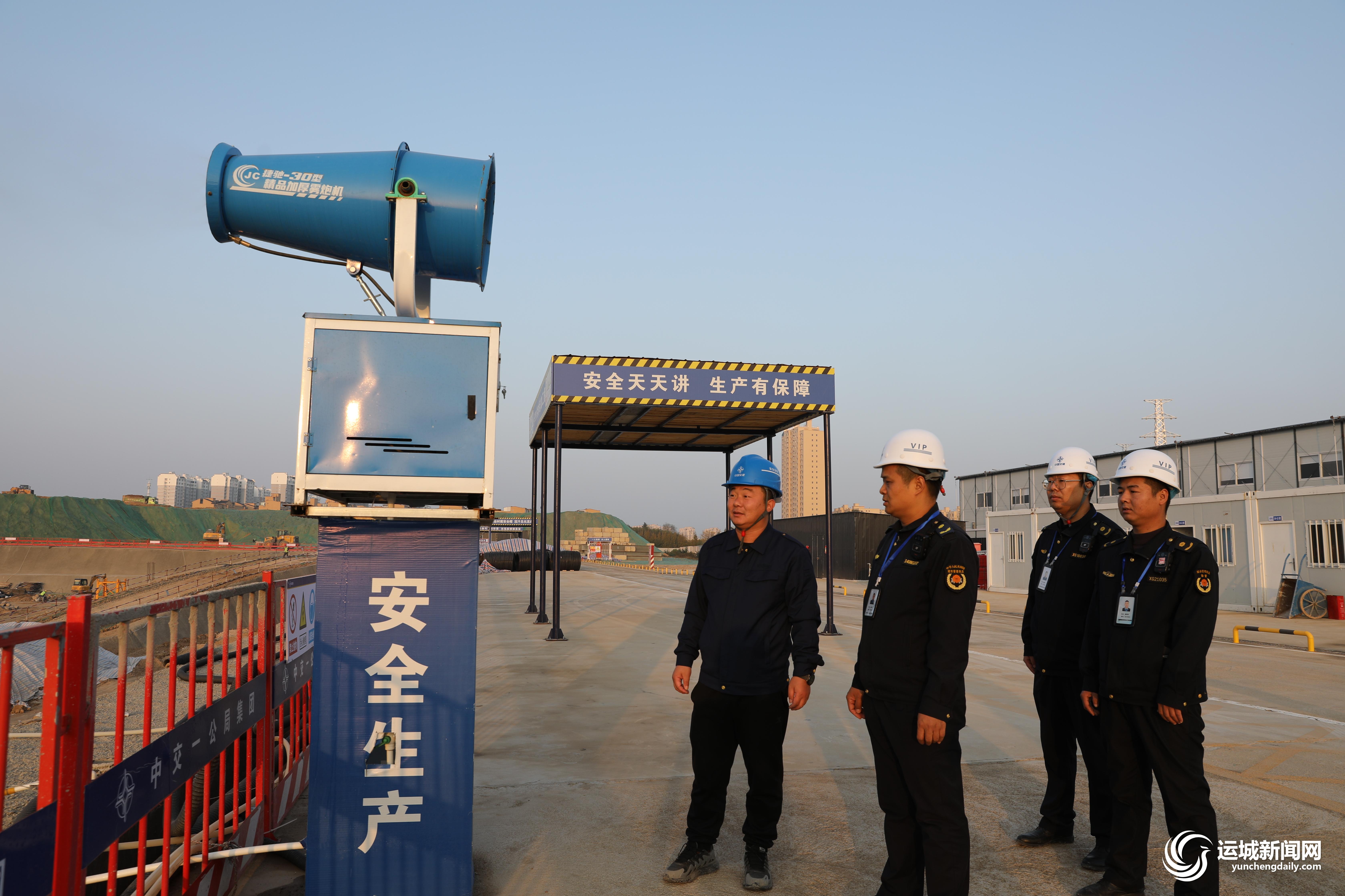 进入运城市人民医院(一期)工地,只见施工区域已全部围挡,主要施工道路已全部硬化且路面没有明显的浮尘,一些施工外围裸露区域也被绿植覆盖,基坑四周雾炮塔全力作业降尘,所有出工地的工程车在安保人员的监督下进行冲洗。