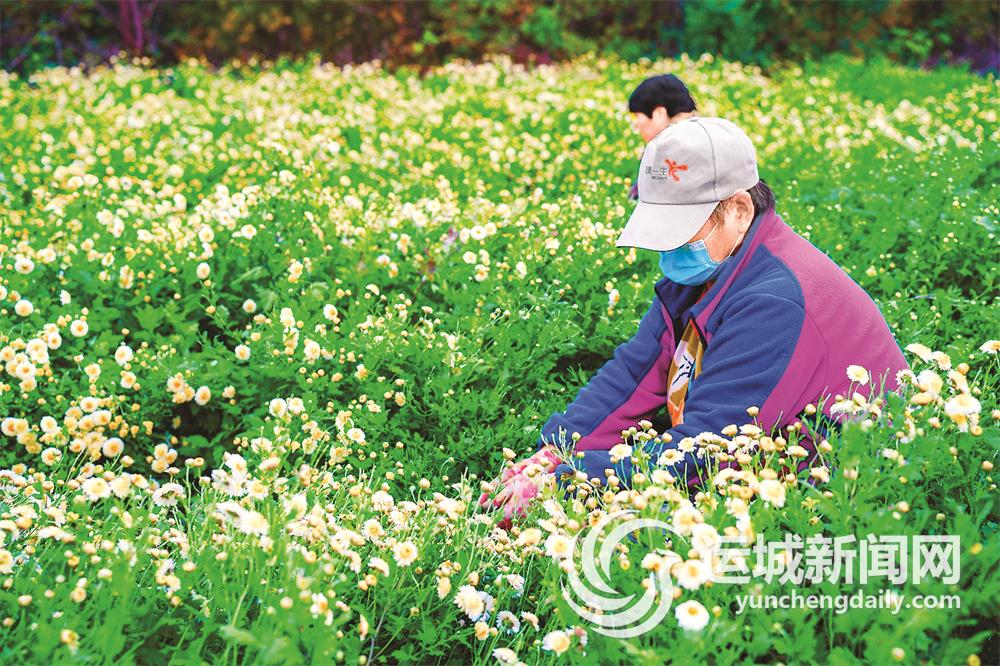芮城县永乐镇永乐村村民在采摘菊花。 记者 陈方斌 摄