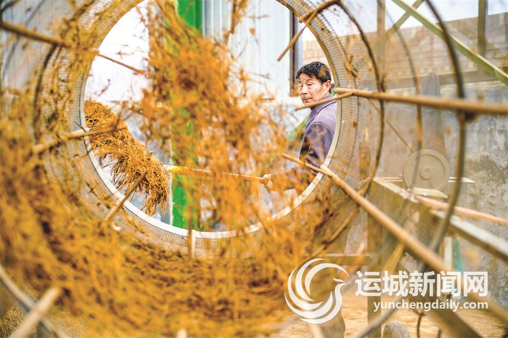 绛县冷口乡宋东村尧晟翔中药材种植专业合作社内,村民在忙着整理中药材。记者 陈方斌 摄