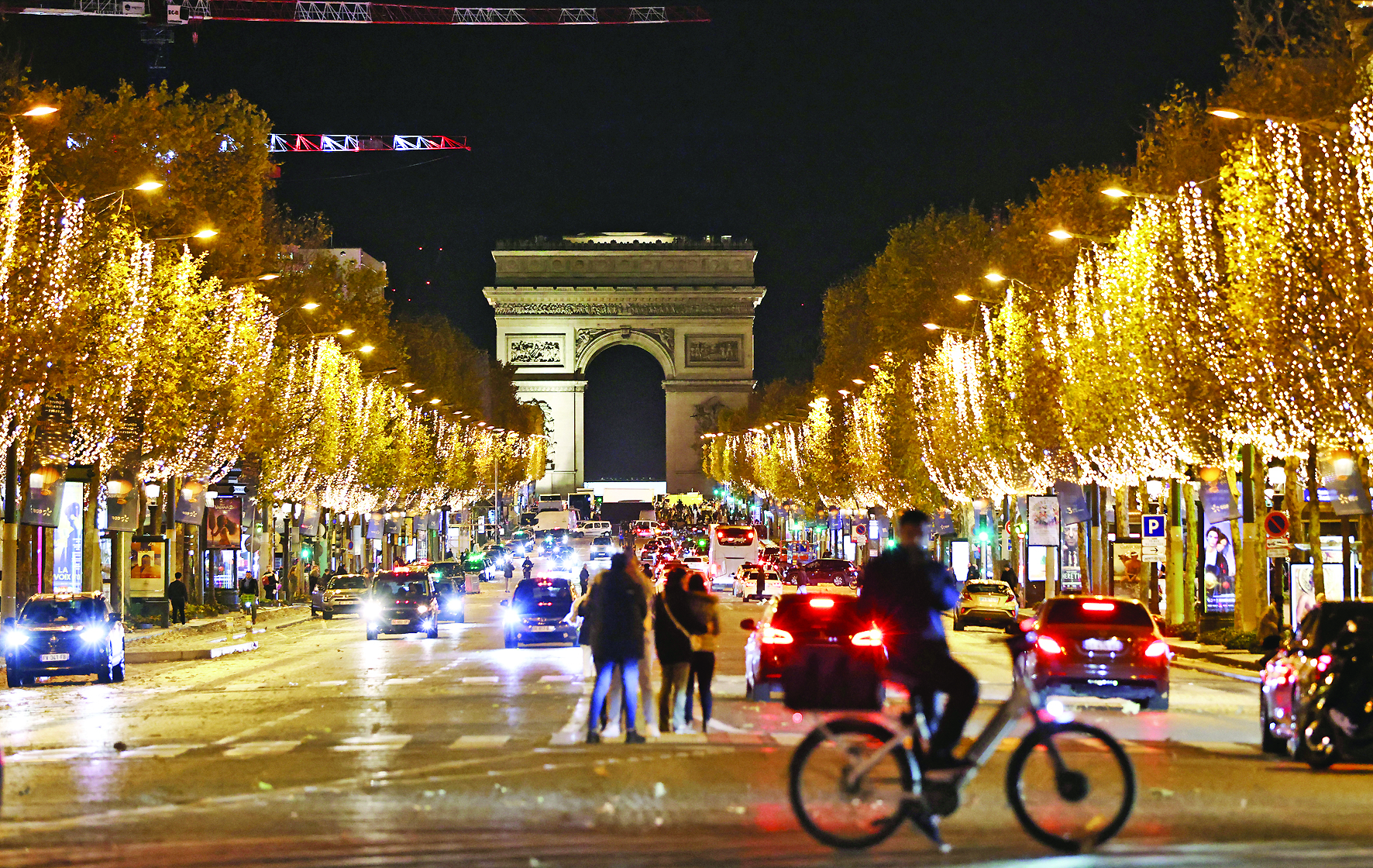 这是11月24日在法国巴黎拍摄的点灯后的香榭丽舍大街。