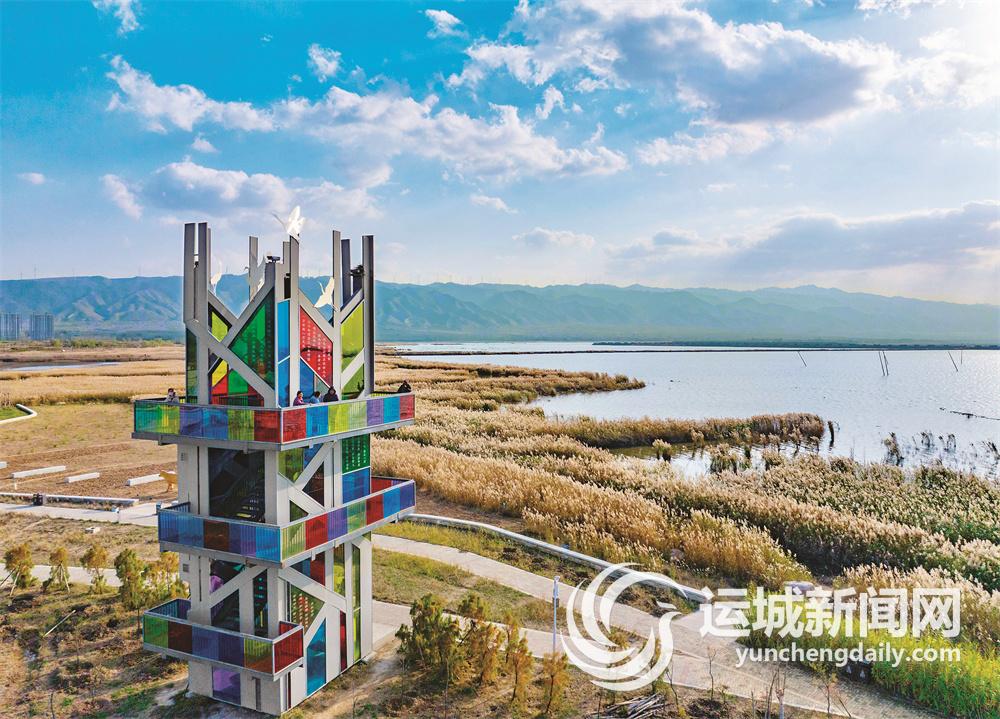 11月25日,市民登上盐湖区鸭子池畔河东成语典故园瞭望台,尽情享受冬日暖阳,领略成语典故园的魅力。