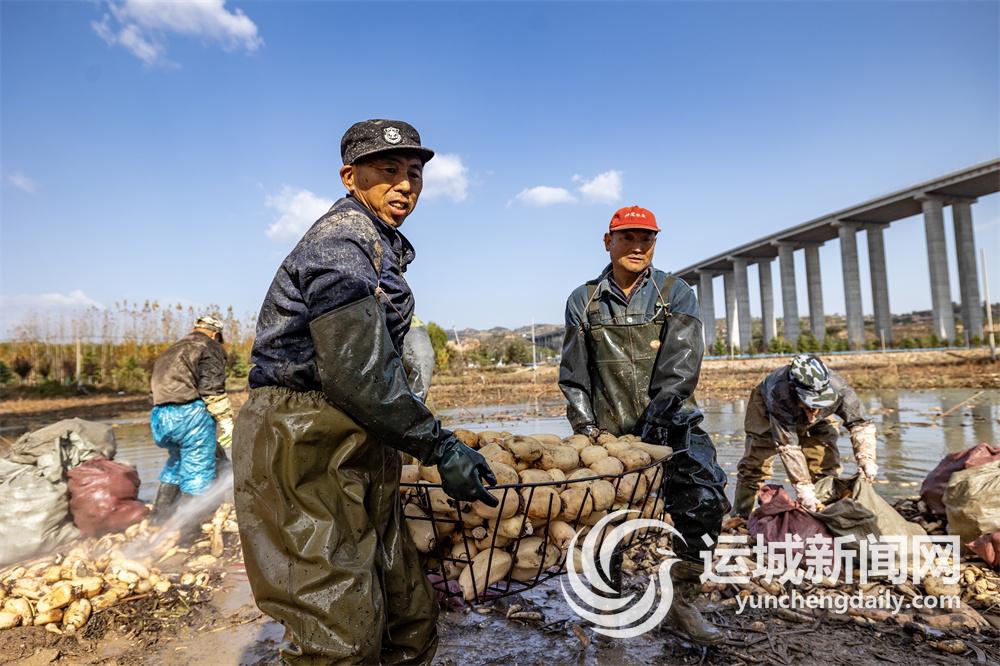 11月25日,在平陆县张村镇窑头村莲藕种植基地,村民忙着采挖莲藕供应市场。 特约摄影 权永军 刘文礼
