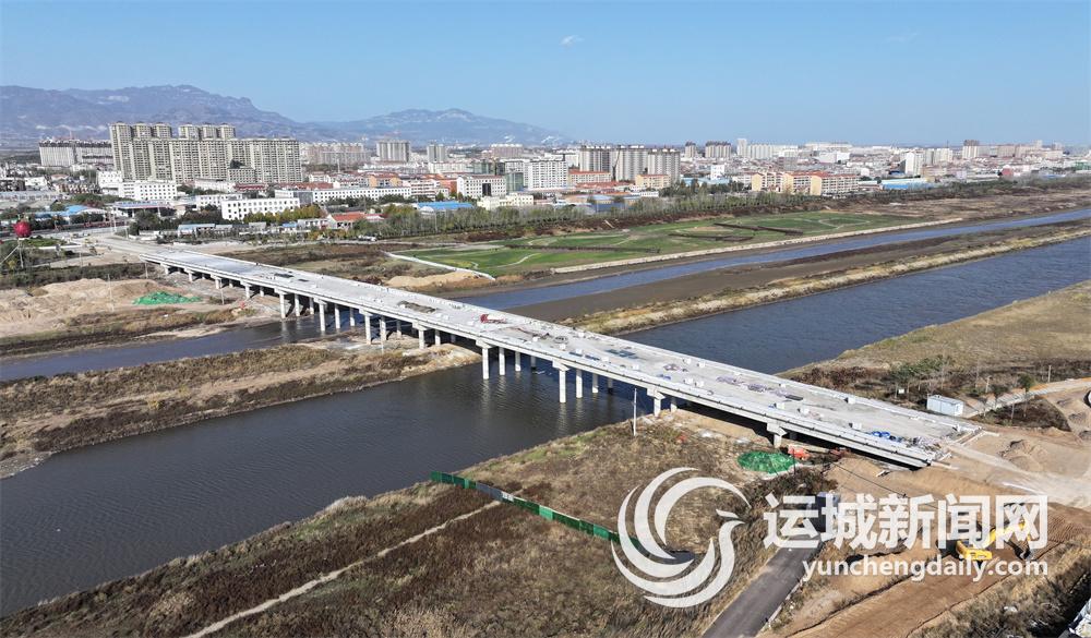 11月24日,稷山县云仁线汾河大桥改建工程项目工地一派繁忙,确保12月底通车。 特约摄影 栗卢建