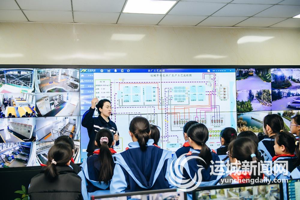11月27日上午,盐湖区魏风小学安邑西街校区150余名师生来到运城首创水务有限公司安邑水厂,零距离探索生活饮用水的来源及生产工艺。师生跟随讲解员的脚步,先后参观了中控室、沉淀池、反应池、滤池,以及加药间、消毒间等地,纷纷感慨水源净化的神奇和工作人员的不易。活动中,学生们积极与水厂工作人员交流,询问有关污水处理的生产知识,并分享了自己的节水小妙招。