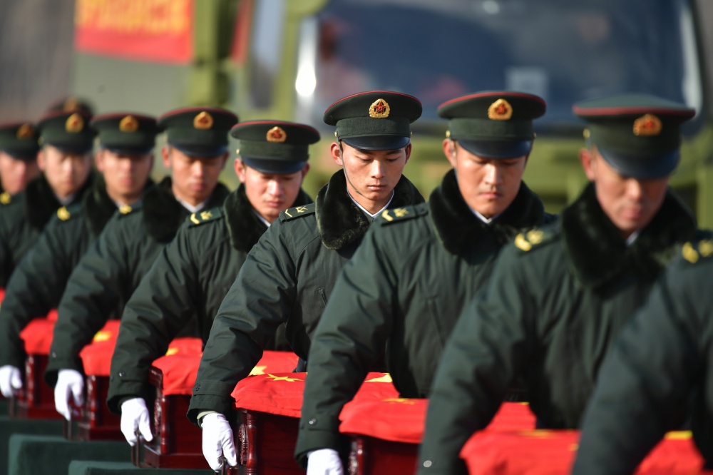 当日,第十一批在韩中国人民志愿军烈士遗骸回国。 新华社记者 杨青 摄