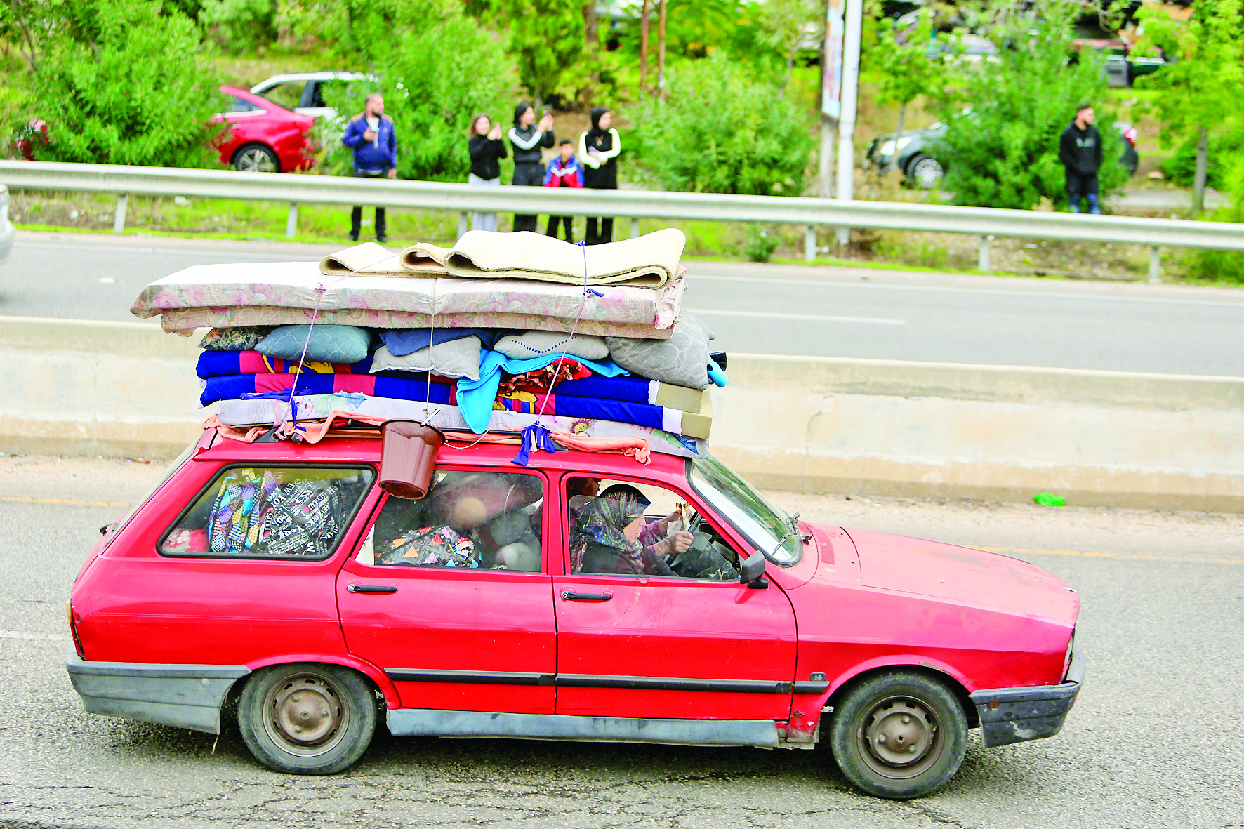 ▲11月27日,在黎巴嫩南部,人们驾车返回家园。