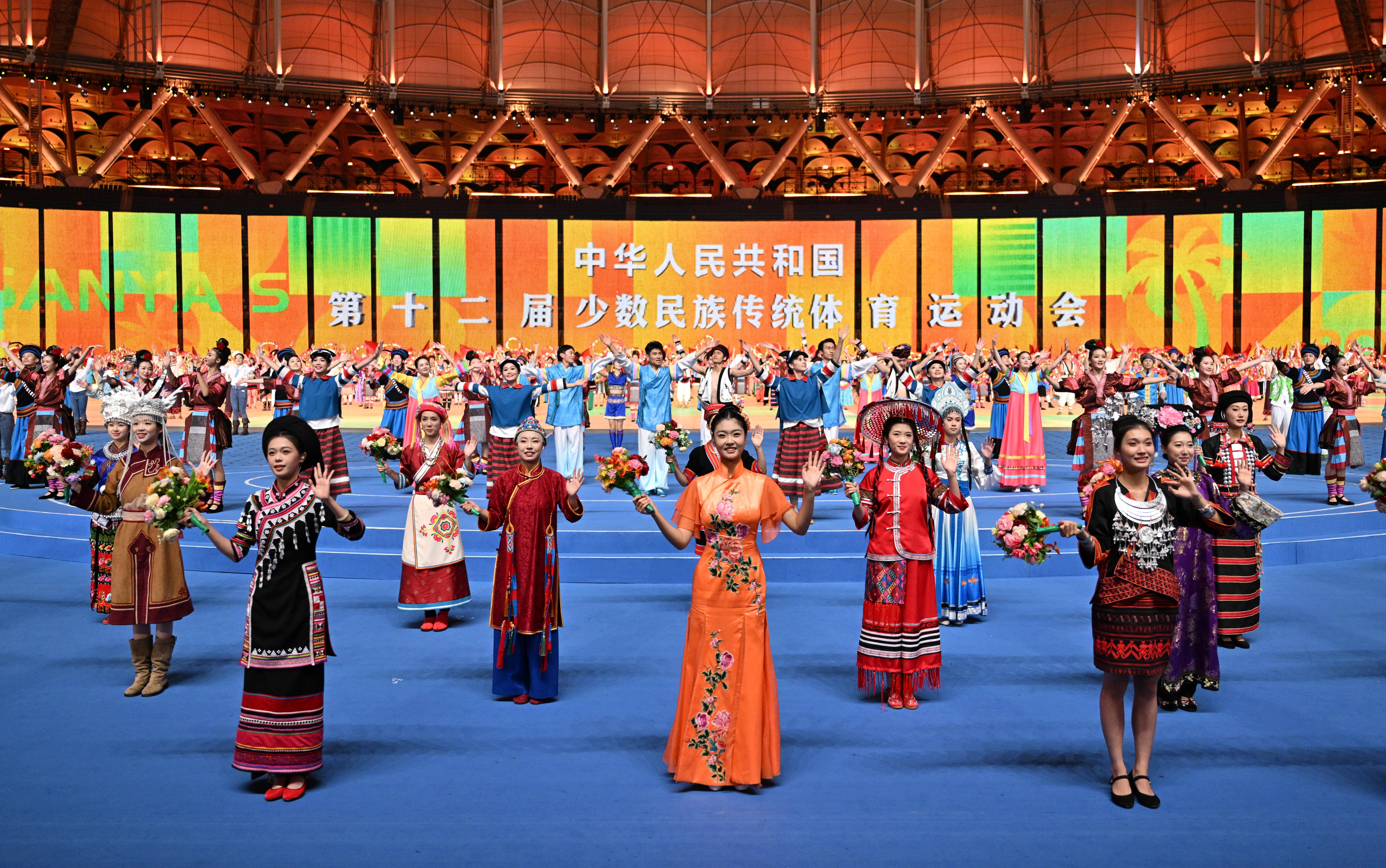 当日,第十二届全国少数民族传统体育运动会闭幕式在海南省三亚市举行。