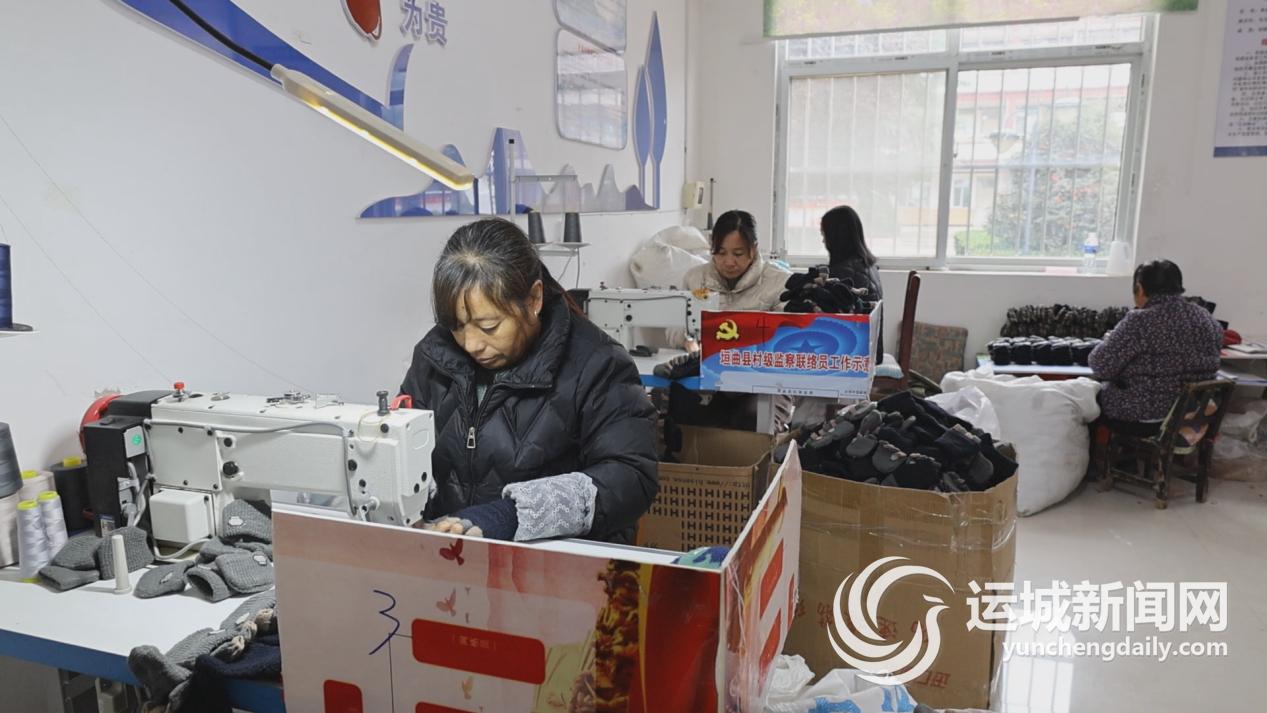 另一头,垣曲县皋落乡的峰艺就业帮扶车间也在有条不紊地生产着各类手工艺成品、半成品。同样,该车间主要采取订单生产、来料加工的模式生产劳保用品,为40余名周边群众提供了就业岗位。
