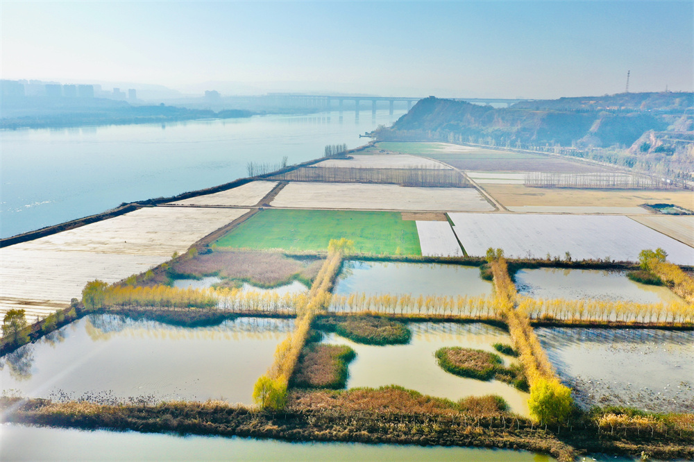 近年来,该县黄河沿岸的生态环境得到显著改善。冬日,岸边树木、芦苇叶子由绿变黄,与周边农田、村庄等相映成趣,构成一幅幅迷人的生态画卷。