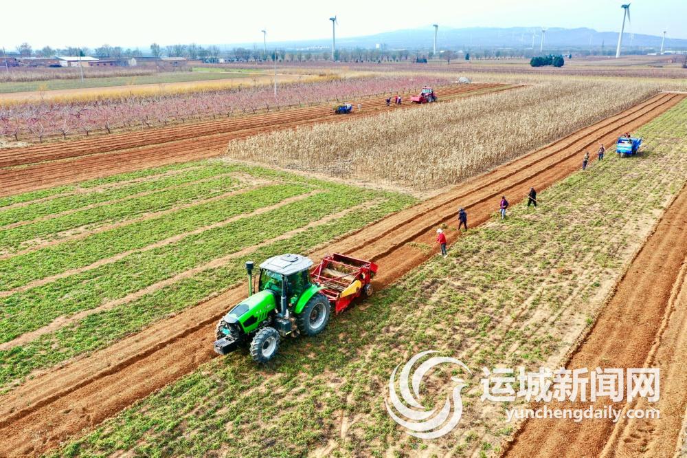 12月4日,平陆县张店镇安沟村村民利用机械采收中药材柴胡,田间一派繁忙景象。