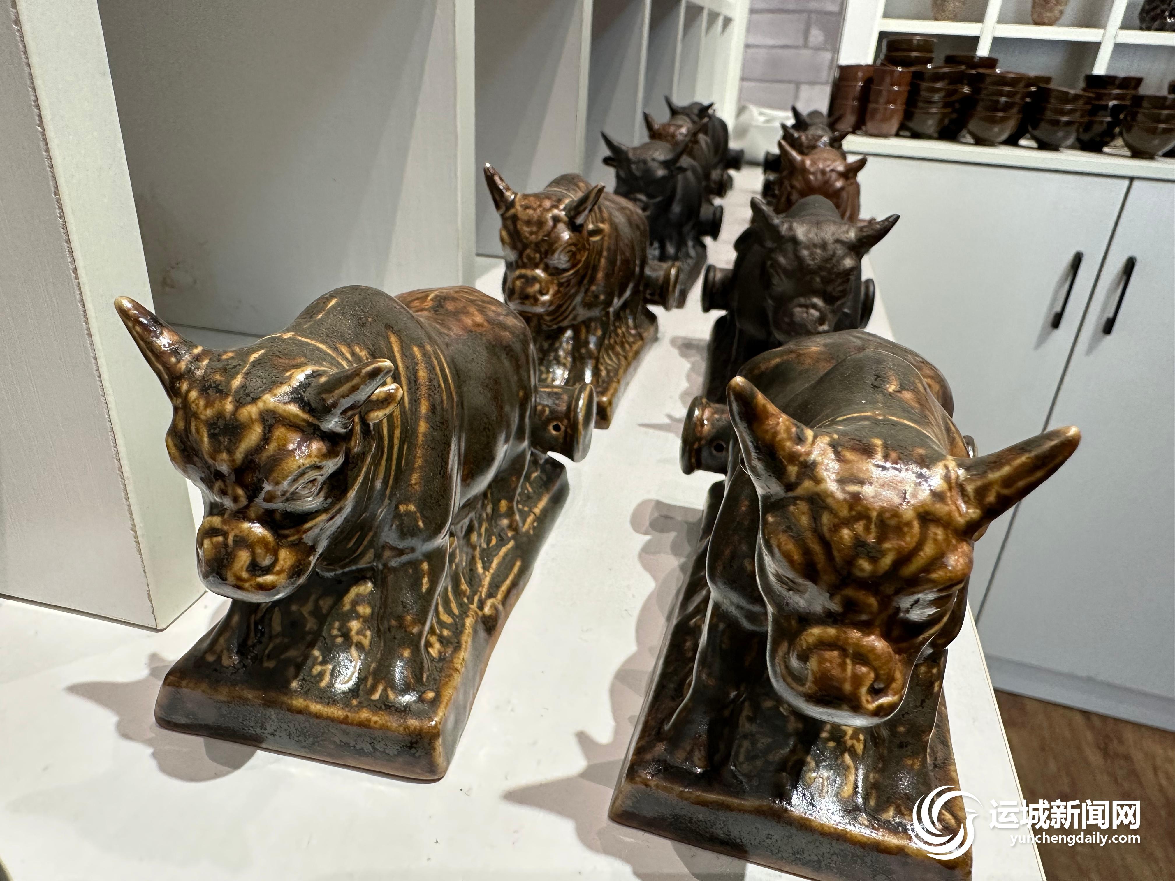 不仅守正,还要创新。随着制作技艺的不断成熟,他将永济地域文化特色元素不断融入蒲州陶的制作中,请人设计各式各样的“鹳雀楼”“普救寺”“黄河大铁牛”等系列陶制文创产品,让蒲州陶制品更具黄河流域传统文化特色。今年国庆期间,李文龙团队制作的系列蒲州陶产品,颇受游客青睐。