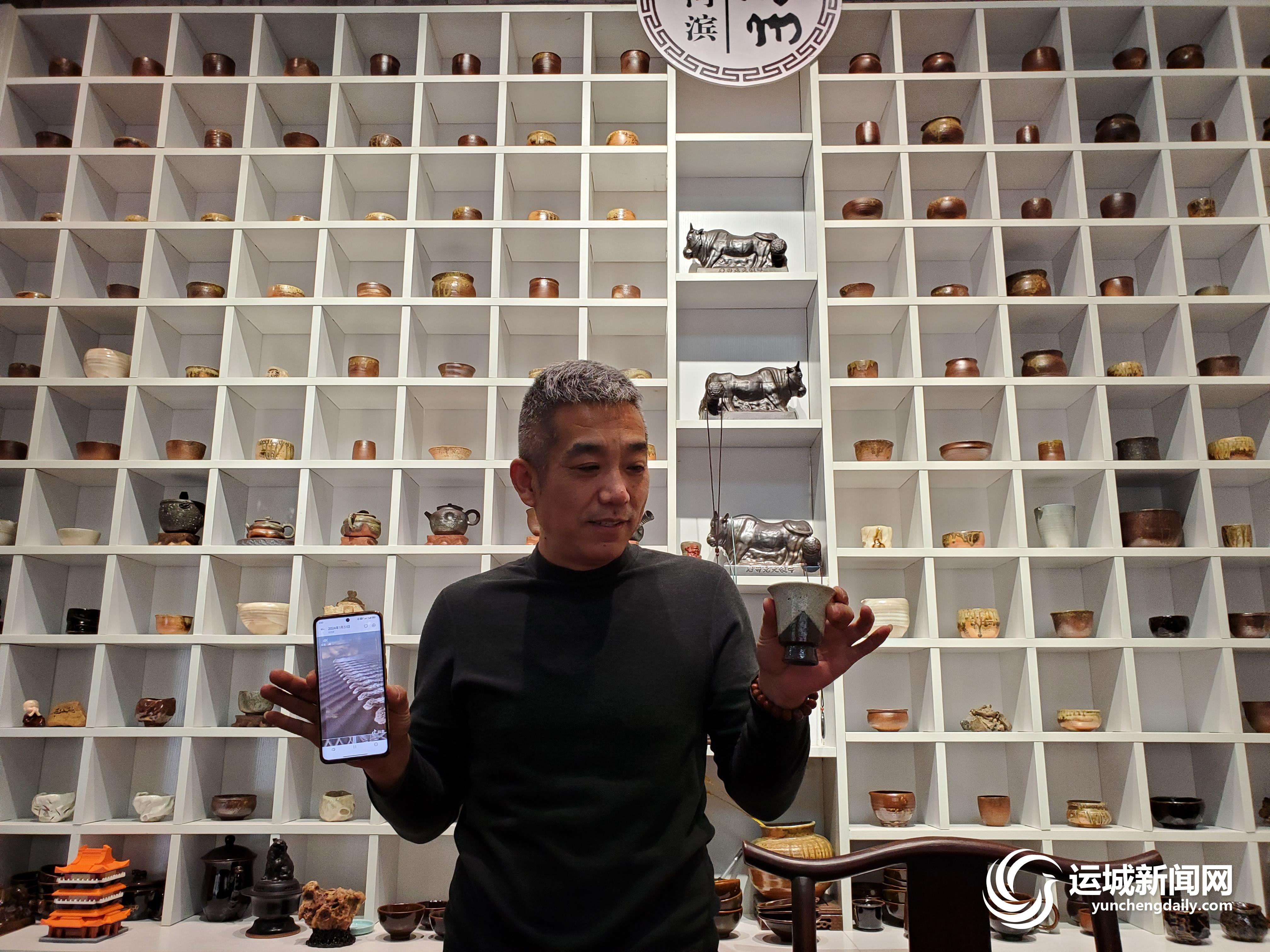 李文龙向记者介绍蒲州陶