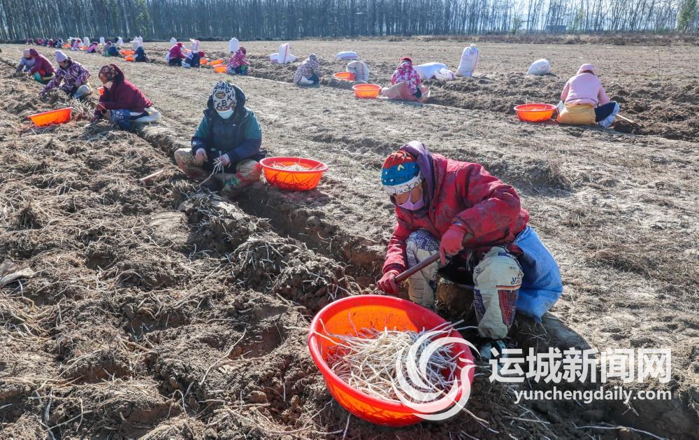12月3日,芮城县永乐镇蔡村的黄河滩地上,村民在收获银条菜,准备发往河南、山东等地。