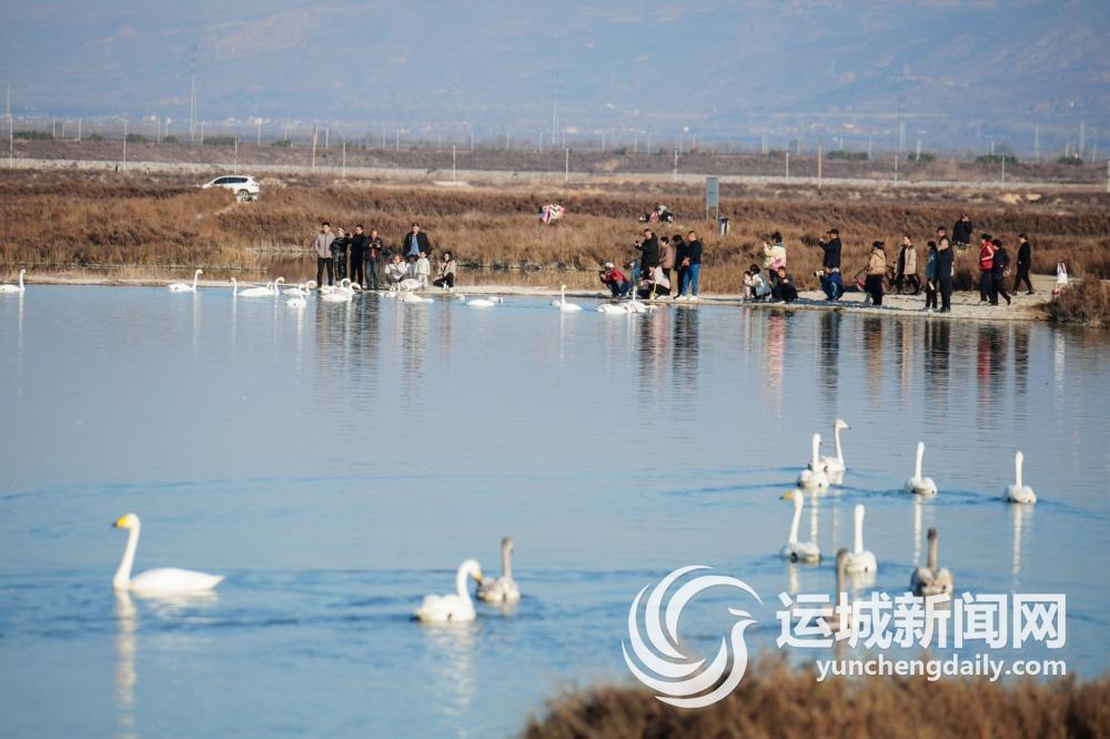 据了解,目前运城盐湖白天鹅数量已达200余只,为近年来最多。在水上,这些优雅的白色天使觅食、嬉戏,为冬日盐湖增添了几分灵动和生机,吸引了众多市民和游客前来观赏拍照。