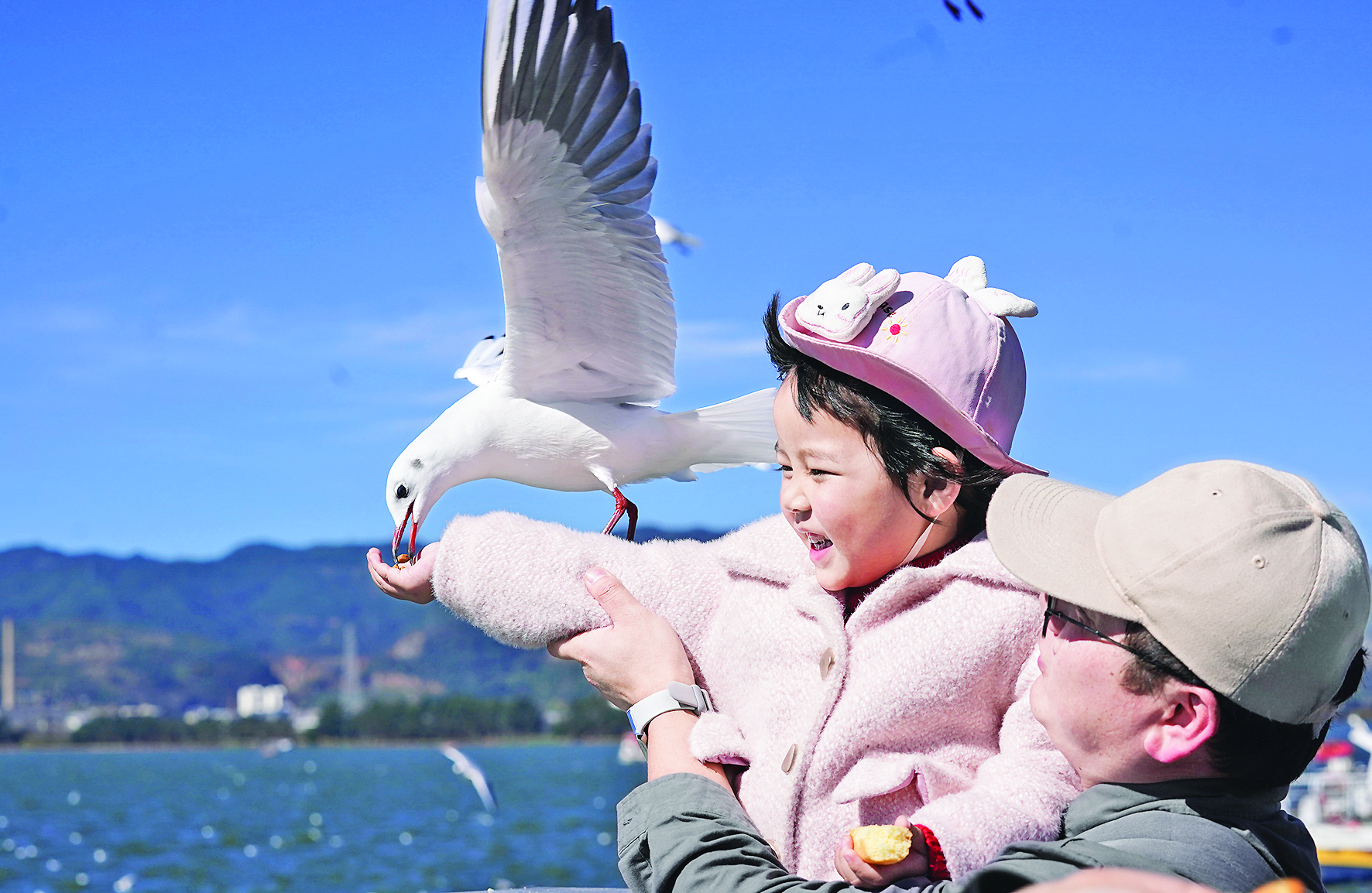 远眺山峦叠翠,近看碧波荡漾……冬日时节,云南昆明滇池国家旅游度假区的草海湖滨生态湿地,湖水清澈、鱼儿畅游,游客在步道上悠闲散步。