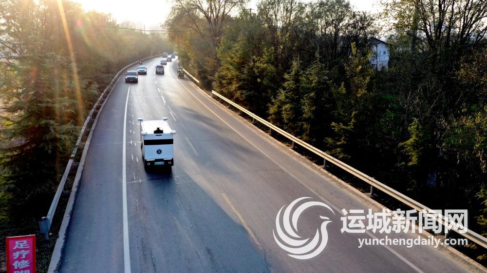 无人驾驶、一路畅行、到站停车、自动归位……这是闻喜县首辆无人自助快递配送车的运送日常。