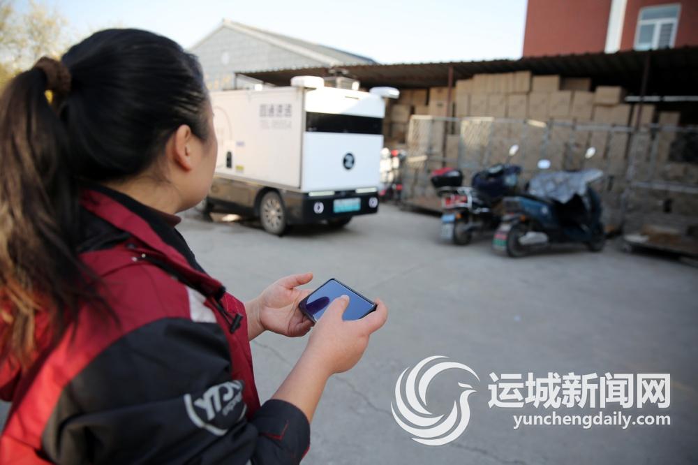 大约半个小时后,“Z5”稳稳地停到了侯村镇吕上窑村便民快递点。站点人员出来后,拿着手机一番操作,快递车门便打开了。