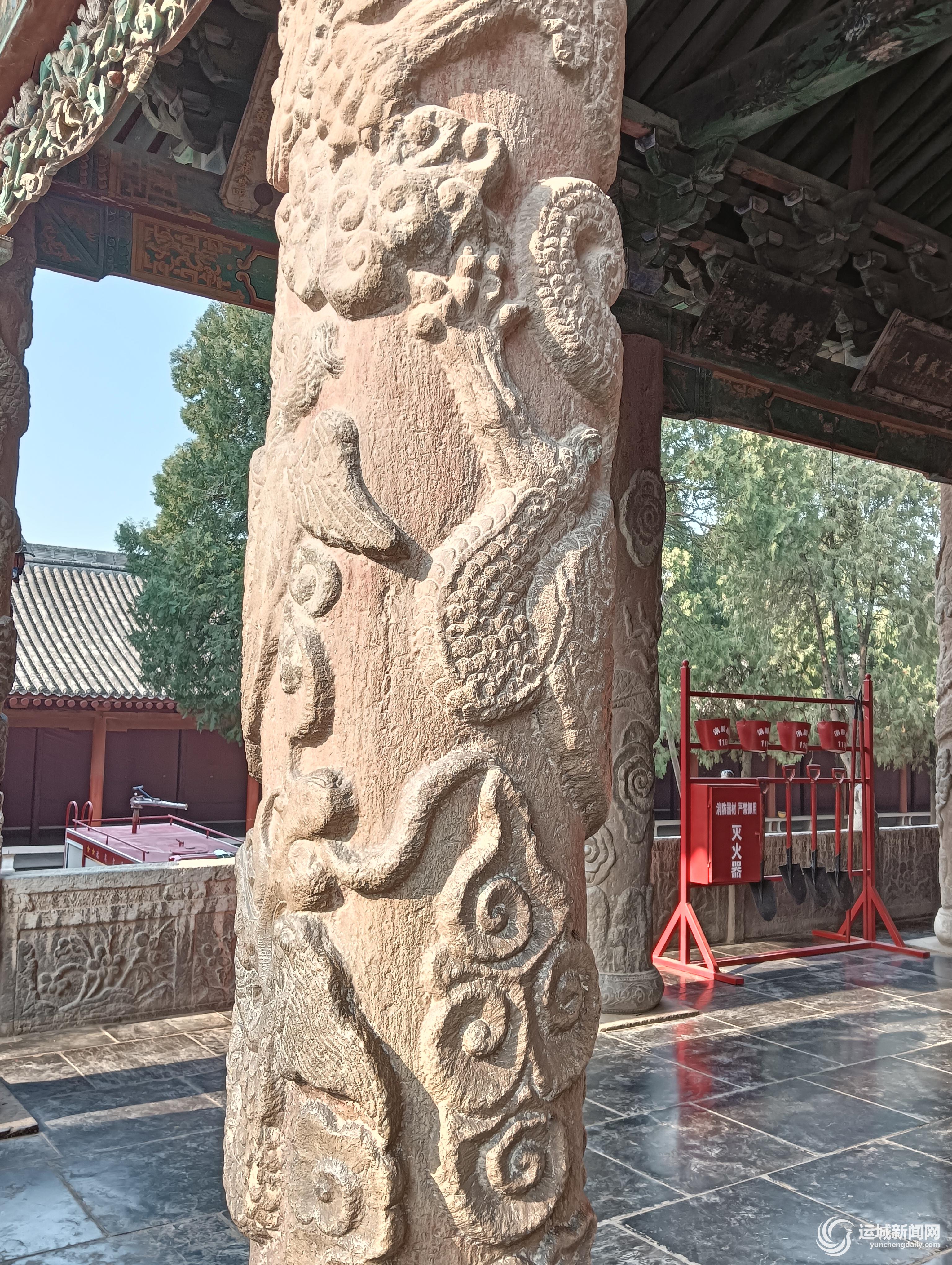 端门以砖石结构示人,坚实厚重,浮雕上二龙飞舞,身姿矫健、张牙舞爪,似在云间嬉戏,又似护佑这一方圣地。砖石的质朴与浮雕的灵动完美融合,古朴韵味与精巧技艺相得益彰。
