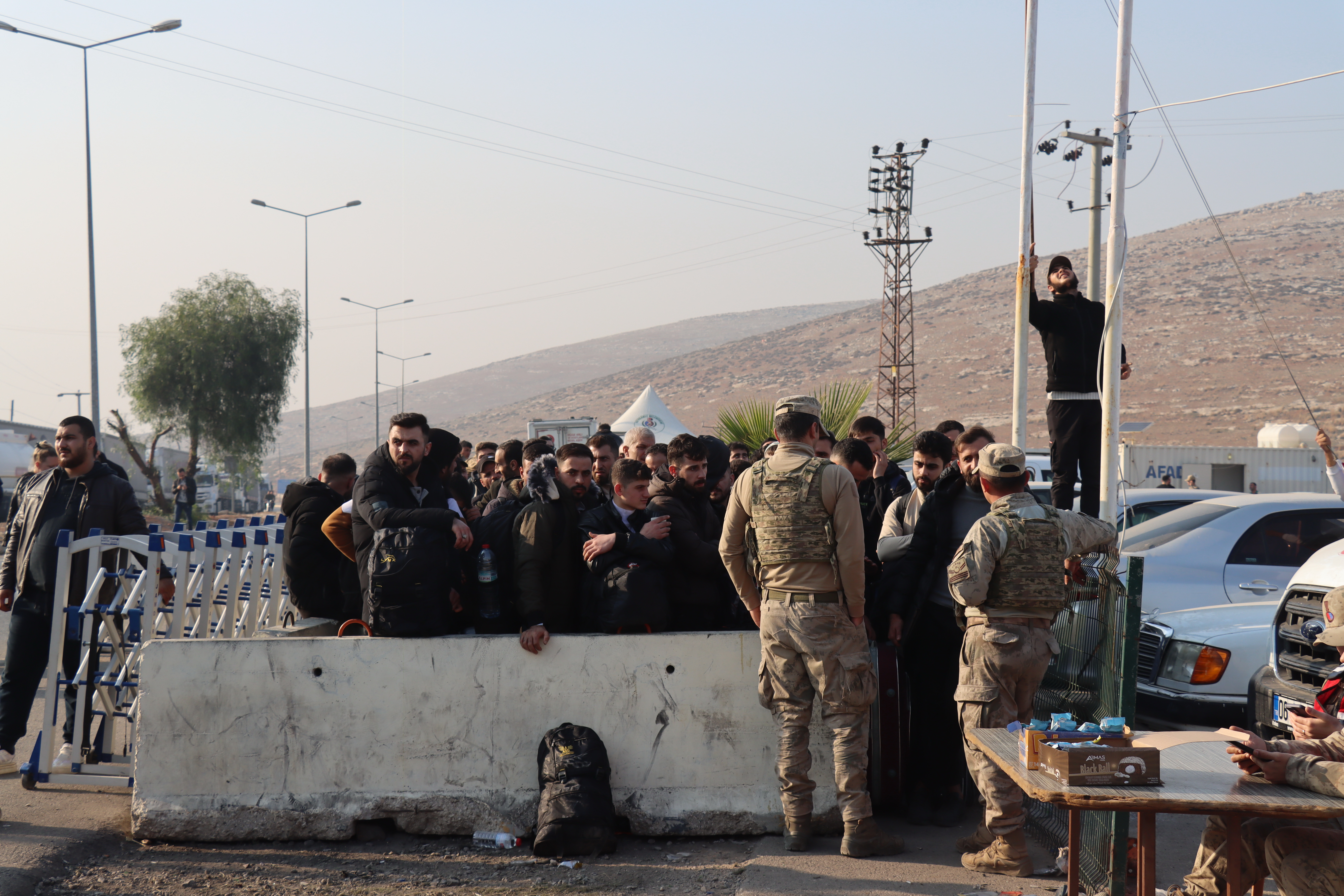 12月10日,人们等待通过土耳其南部哈塔伊省的奇尔韦格聚过境口岸进入叙利亚。土耳其南部哈塔伊省毗邻叙利亚的奇尔韦格聚过境口岸9日起重新开放,众多土境内叙利亚难民通过该口岸返回家园。 新华社发