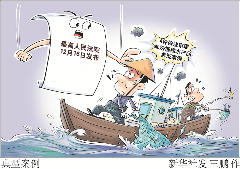 最高人民法院12月16日发布4件依法审理非法捕捞水产品典型案例,引导人民群众正确认识保护渔业资源和生态环境的重要性,合法规范开展渔业捕捞活动。新华社发 王鹏 作