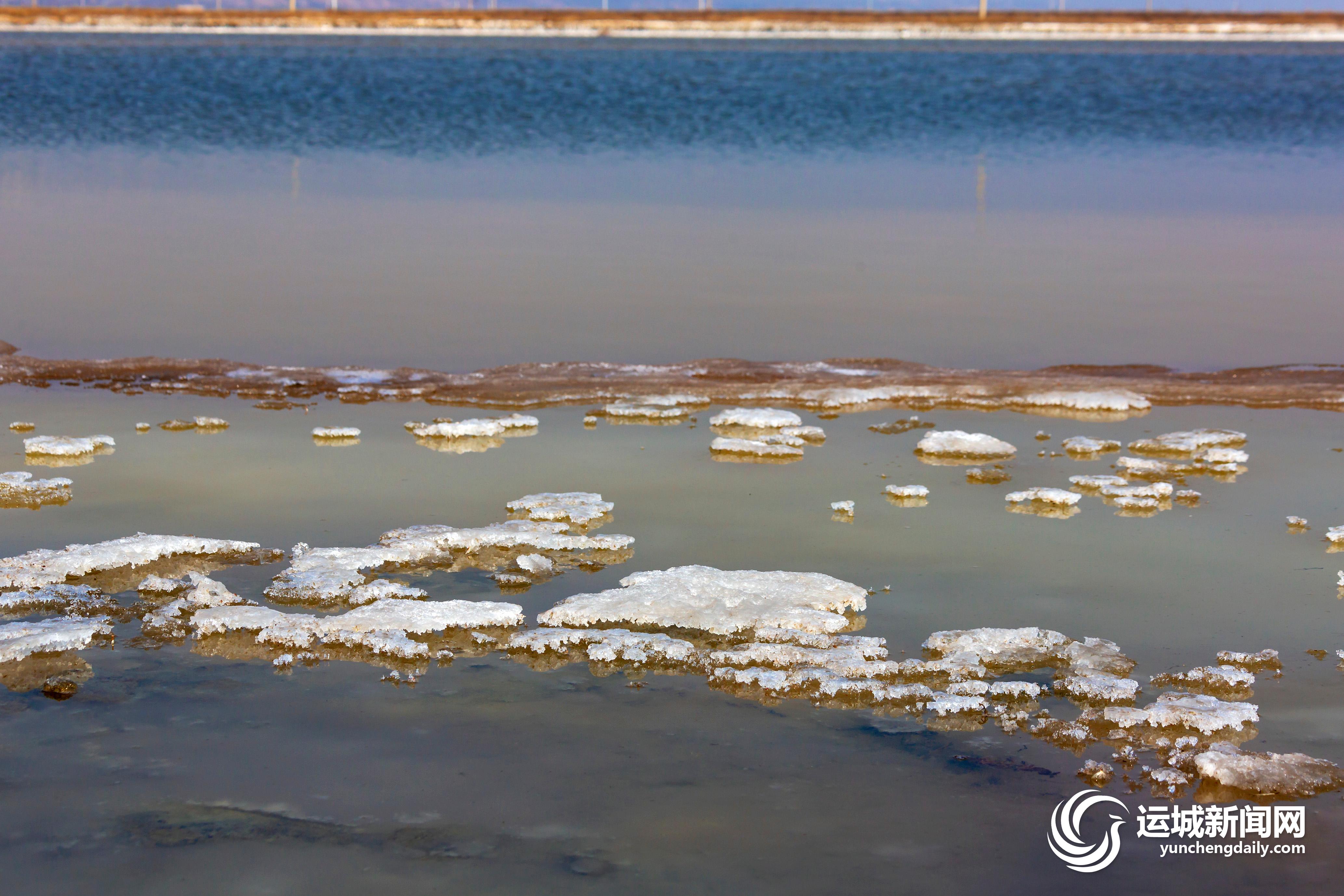 12月17日,持续的零度以下气温,使千年运城盐湖内再现独特的“硝花”奇观,酷似朵朵祥云,为冬日的盐湖增添了勃勃生机。