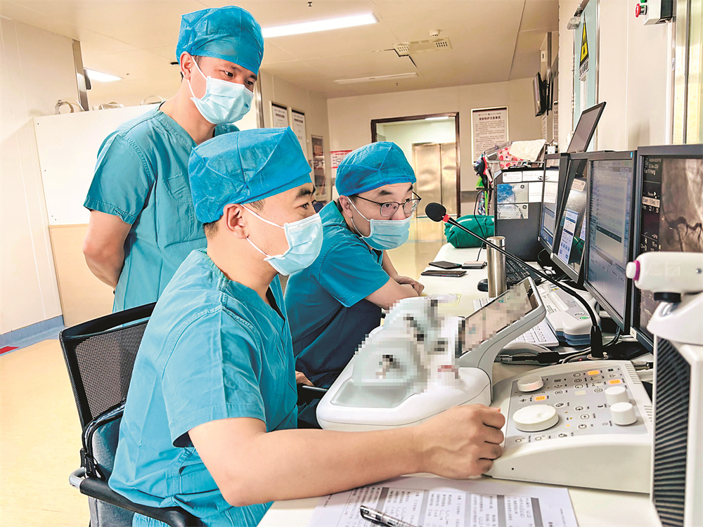 “全程没穿铅衣,真轻松。”李永慧感叹。过去,由于超量X光线对人体伤害较大,做介入手术的医生需要身穿铅衣进行防护,他们也被称为“铅衣卫士”。沉重的铅衣往往重达20公斤,一场手术下来,医生们全身早已汗流浃背。医生在床旁进行手术,挽救患者健康的同时,也承受着射线对身体的伤害。