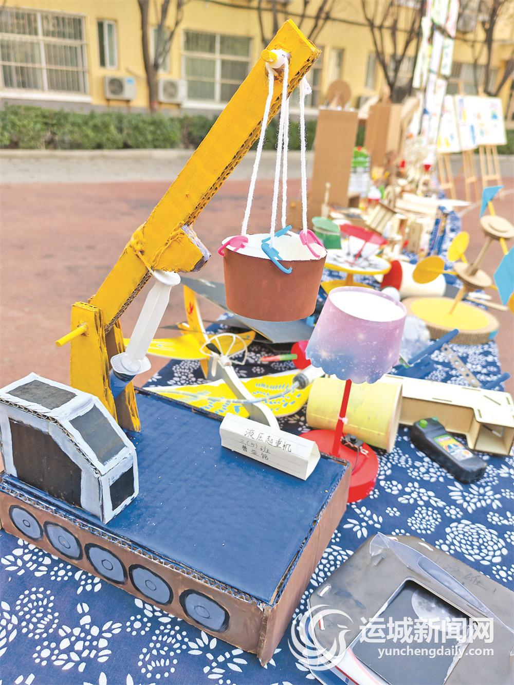 活动中,孩子们动手制作的小发明创意满满,亮眼吸睛。“这是我根据滑轮原理制作的‘电梯’,转动把手便可以完成箱体的升降。”三年级学生赵一诺告诉记者,自己制作的‘电梯’用的是家里废旧快递盒,废物变宝的过程中,还增强了自己的动手能力。