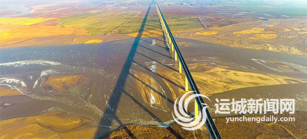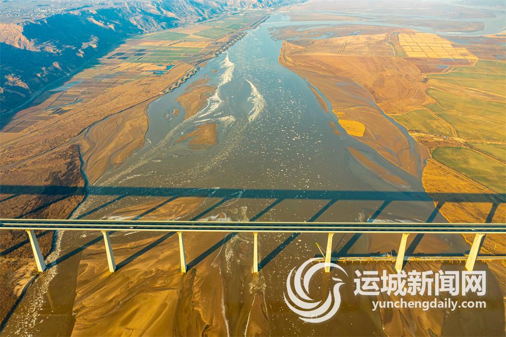 图为临猗黄河大桥与流凌景观交相辉映(12月16日摄)。