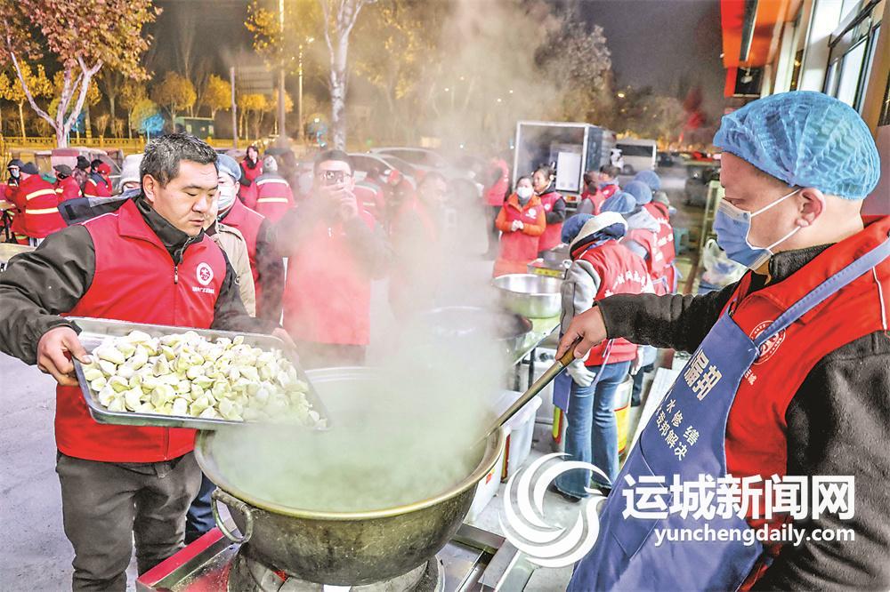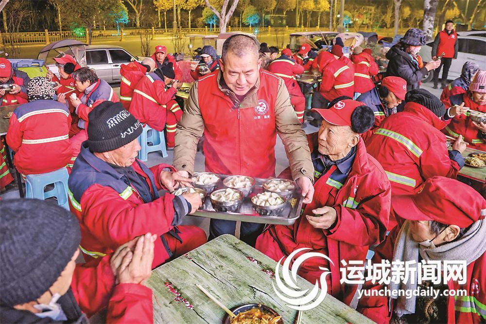 “冬至吃饺子是民间传统习俗,有吃饺子保暖御寒的寓意。”盐湖区第一时间志愿者协会会长张昌勤说,志愿者把对节日浓浓的祝福和对环卫工人辛勤付出的关怀,都包在了每个飘香的饺子里,也希望更多企业和个人能加入志愿者队伍,为更多需要的人服务。