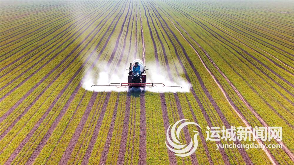 12月20日,在万荣县一处黄河滩麦田里,农户驾驶拖拉机进行喷药作业。近段时间来,万荣县加强小麦精准科学管理,确保小麦安全越冬,为明年夏粮丰收打好基础。