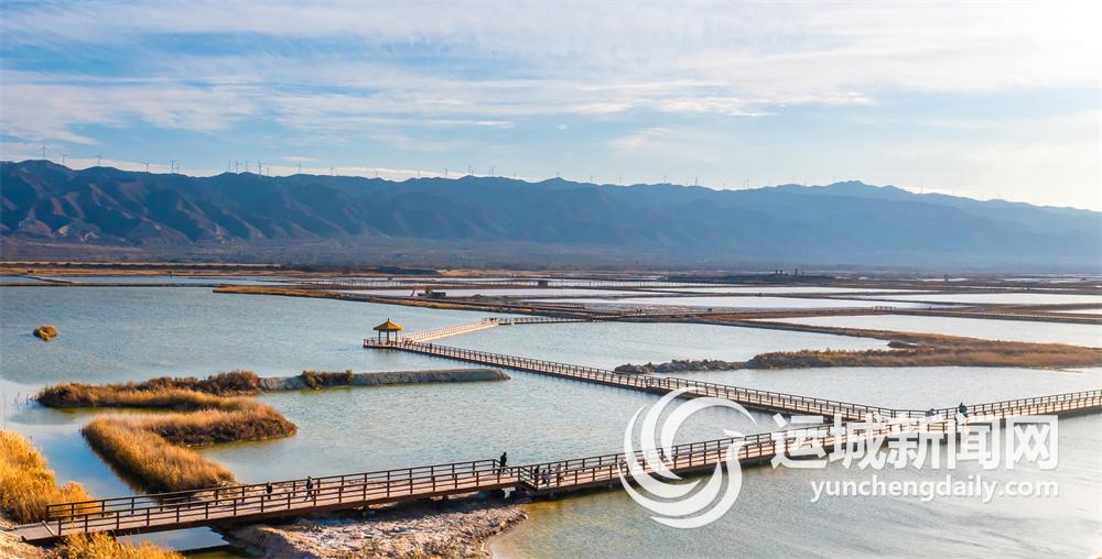 12月21日,游客在运城盐湖亲水观光木栈道上欣赏美景。近年来,我市坚持生态优先、保护为主、适度开发,不断加大对盐湖生态修复和保护力度,提升盐湖生态系统多样性、稳定性、持续性,推动生态效益和经济效益同步提升。