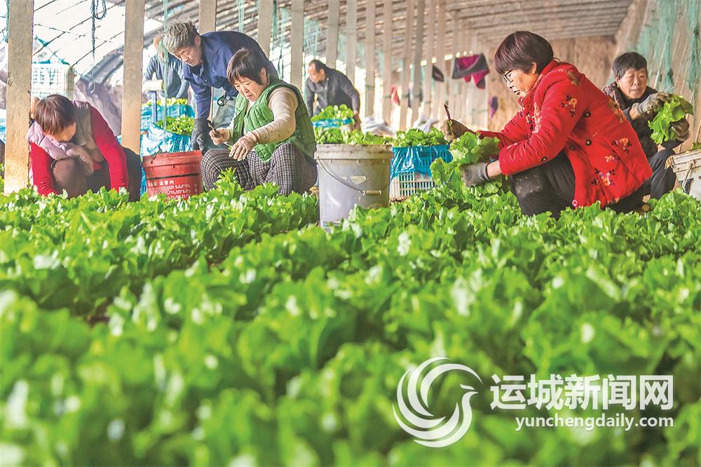 12月20日,盐湖区龙居镇赵村一蔬菜大棚里,菜农们在采收蔬菜。