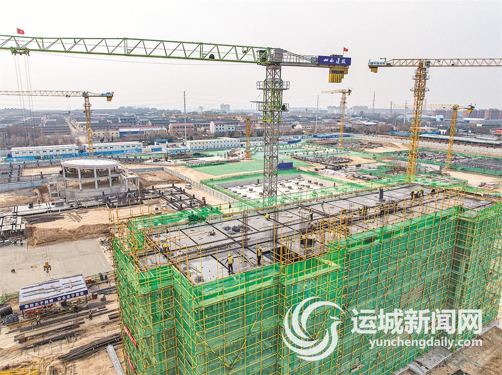12月25日,河津市龙门学校建设项目(中学部)施工现场,工人们在加紧施工。