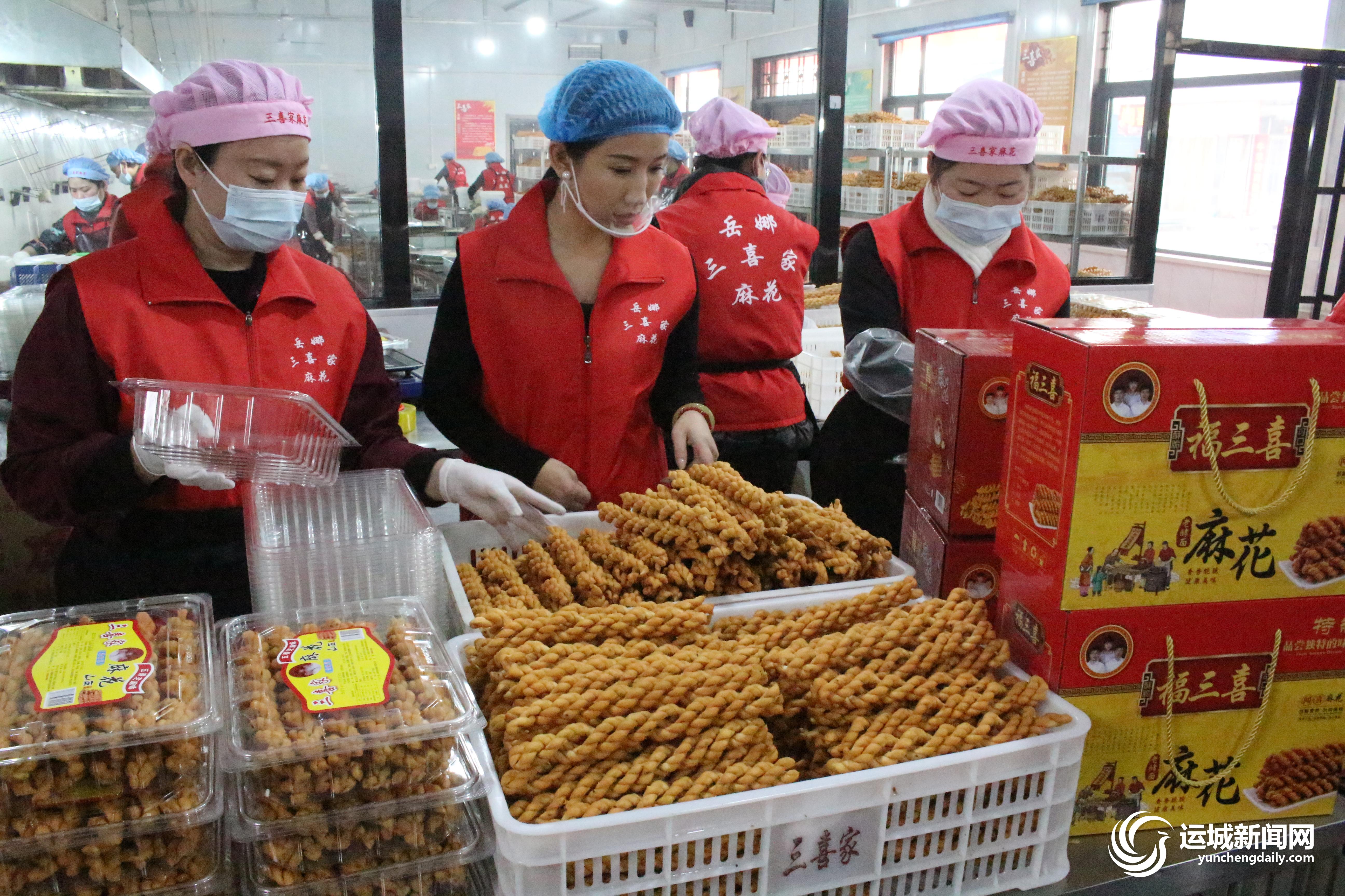 近日,在闻喜县东镇蔬菜批发市场的山西省岳娜“三喜家”食品有限公司车间里,员工们正赶制订单,保障新年、春节市场需求。