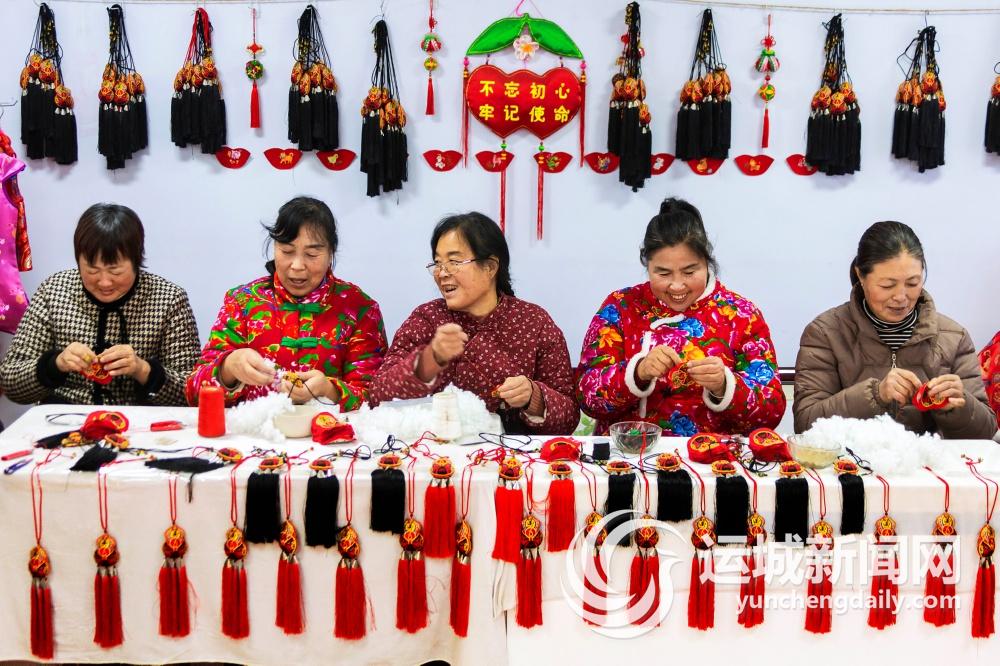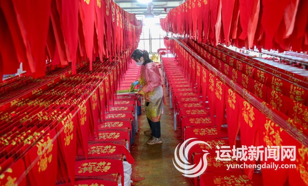2024年12月28日,在位于盐湖区乔阳村的吉巧惠刺绣专业合作社,社员在赶制含有关公文化的文创饰品。