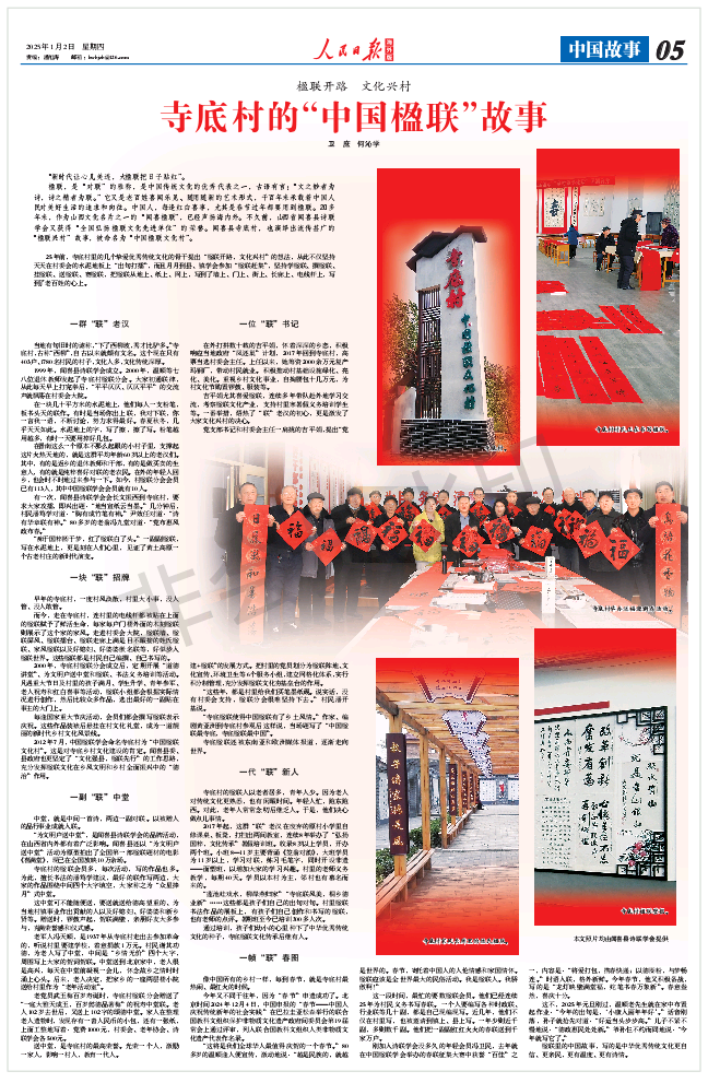 2012年7月,中国楹联学会命名寺底村为“中国楹联文化村”。这是对寺底乡村文化建设的肯定。闻喜县委、县政府也更坚定了“文化强县,楹联先行”的工作思路,充分发挥楹联文化在乡风文明和乡村全面振兴中的“德治”作用。