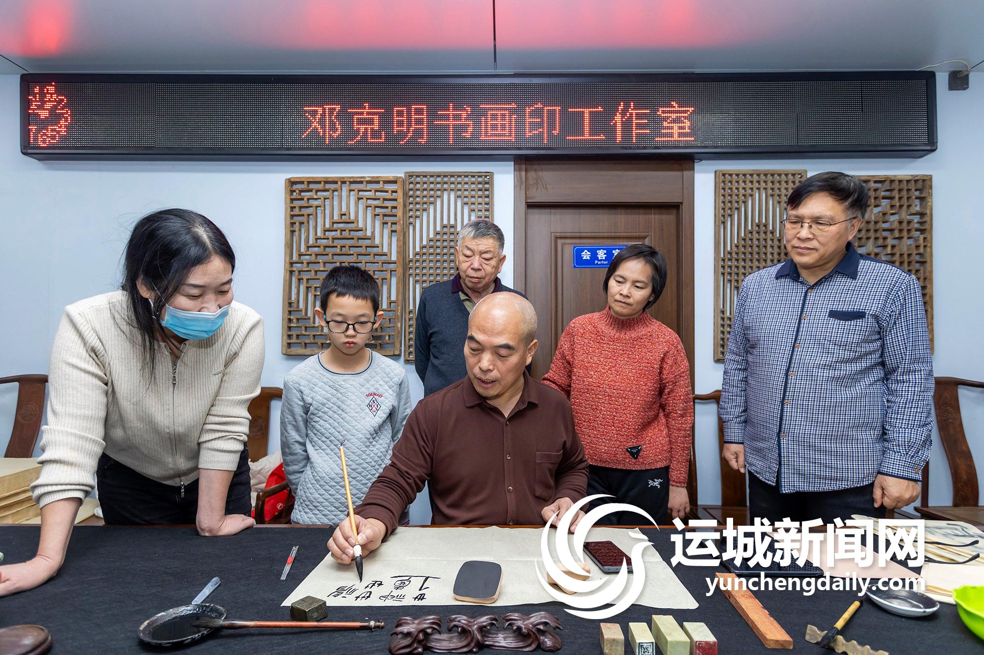 近日,运城市书法家协会副主席邓克明向爱好者介绍陶印刻制。