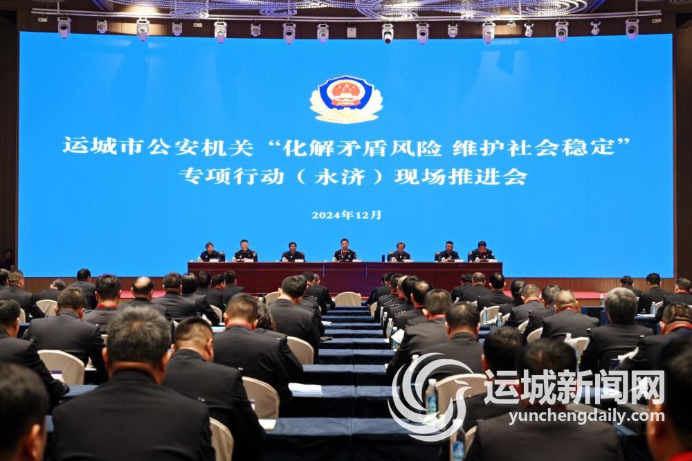 2024年12月31日,运城市公安机关“化解矛盾风险 维护社会稳定”专项行动(永济)现场推进会,在永济召开。会议要求运城公安机关进一步强化突出风险防范化解、冬季突出违法犯罪打击和公共安全隐患整治,严防发生各类敏感性案事件和重大安全事故,坚决守牢安全稳定底线。