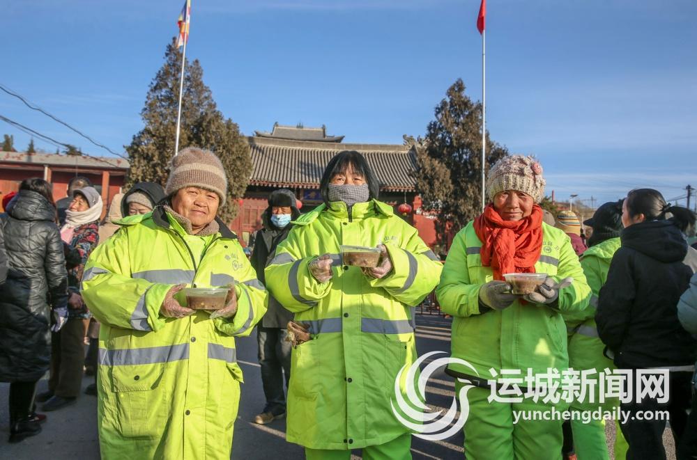 1月7日,盐湖区泓芝驿镇店头村关帝庙前熙熙攘攘、人潮涌动,一场由关帝德佑(山西)文化传承有限公司爱心人士携手该村村委会举办的腊八节品粥活动热闹开展。