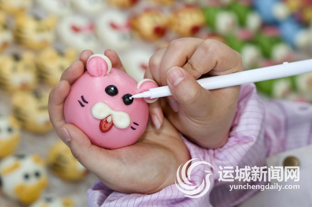 蛇年到,花馍俏。1月8日,夏县水头镇的夏水馒头工作室里一片热闹而忙碌的景象。工作室负责人姜莎正站在晾晒架前,仔细地整理着刚做好的各式果蔬花馍。那一个个造型别致、色彩鲜艳的花馍,仿佛在诉说着即将到来的蛇年的喜庆与欢乐。