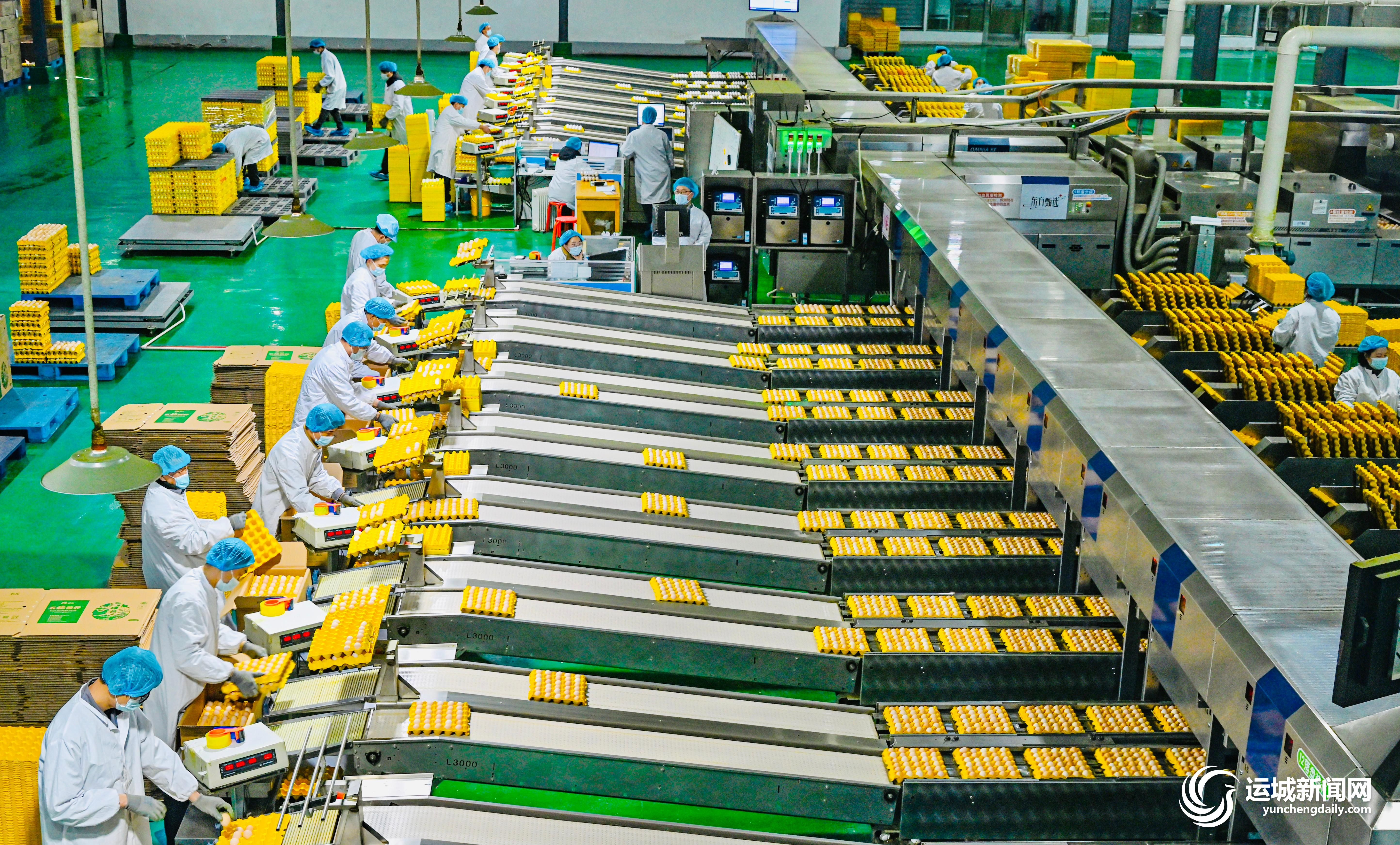 1月7日,工人们在稷山县山西晋龙集团生产车间分拣、包装新鲜鸡蛋。近年来,该公司通过技术创新,投入使用智能化养鸡设备和鸡蛋分拣设备,提高鸡蛋产量。近期,该公司加快生产,严控质量,全力保障春节市场供应。