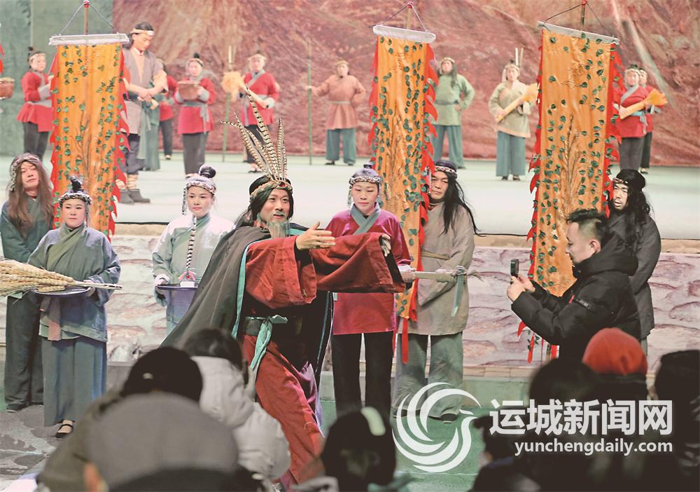 《食为天》由国家级非遗稷山高台花鼓传承人苏安福等精心打造,通过“舜封后稷”“后稷稼穑”“犁耧耕播”“祭天祈雨”“开镰庆丰”5个篇章,生动诠释了民以食为天、农为国之本的主旨要义,展现了源远流长的农耕文明在河东大地的传承脉络。