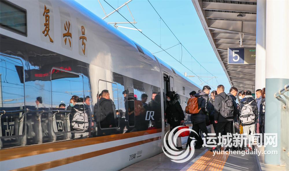 1月14日,春运当日,旅客在运城北站登车,踏上旅途。