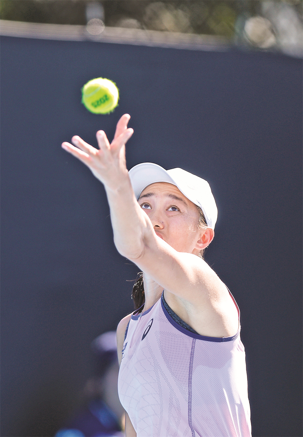 1月14日,张帅在比赛中发球。当日,在墨尔本进行的2025年澳大利亚网球公开赛女单首轮比赛中,中国选手张帅2比0战胜美国选手凯斯勒,晋级下一轮。