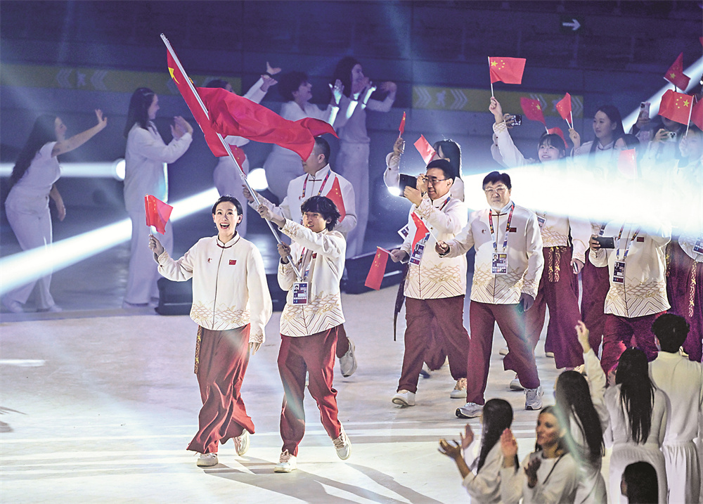 1月13日,中国大学生体育代表团在开幕式上入场。