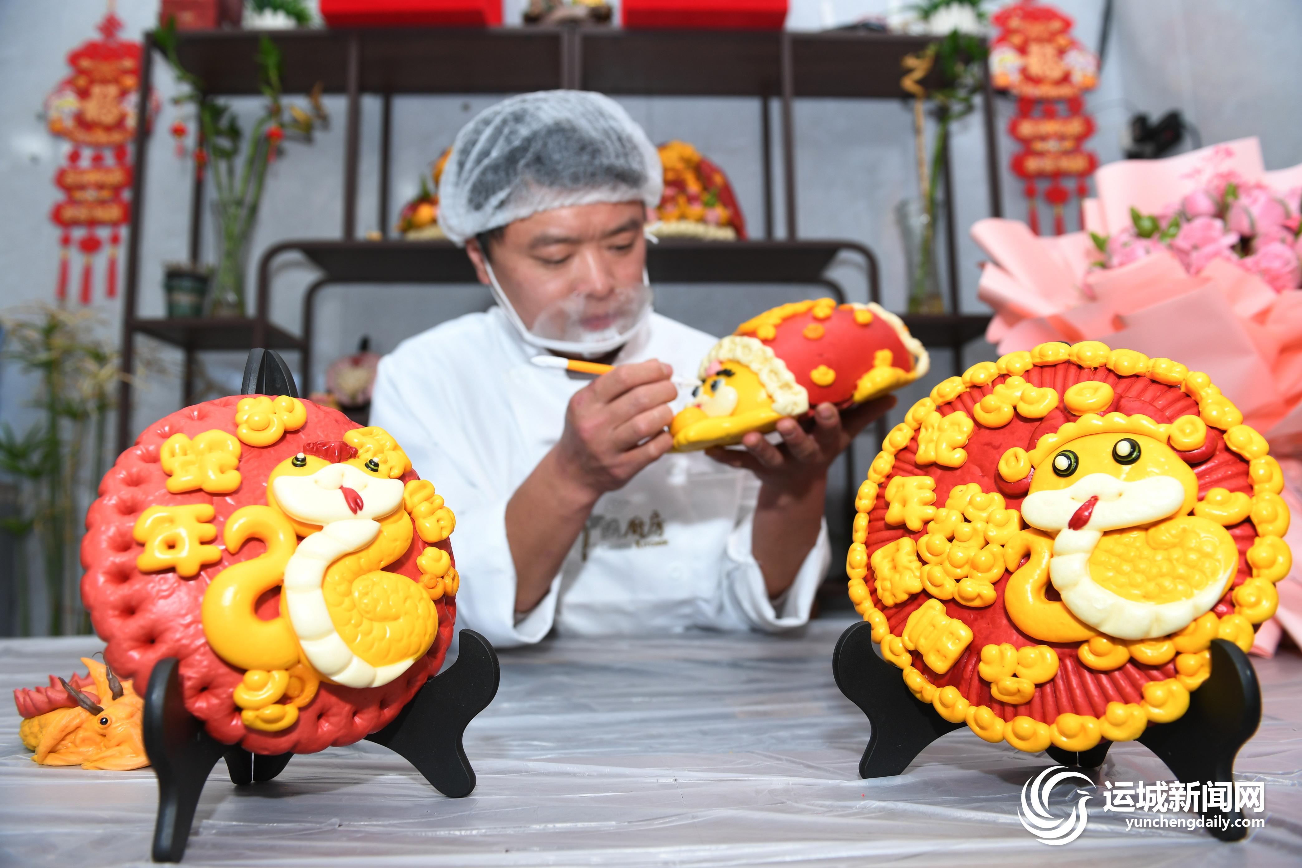 随着春节临近,这家果蔬花馍加工坊的花馍制作进入高潮。面点师以优质面粉为原料,采用新鲜果蔬榨汁调制色彩,经过捏、压、剪、切、贴等手法,制作出元宝、葫芦、福袋、蛇元素等多种造型的花馍。同时,通过装饰和点缀,使得花馍色彩鲜艳、图案美观,既具有观赏价值,又富有文化内涵。