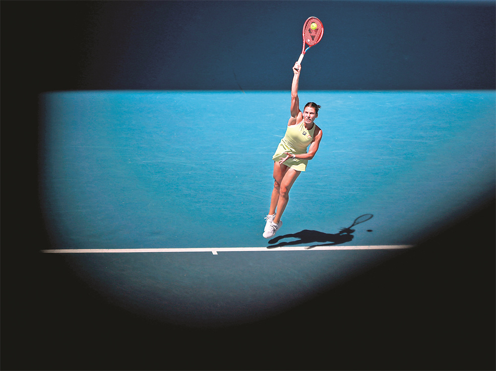 1月16日,纳瓦罗在比赛中发球。当日,在墨尔本进行的2025年澳大利亚网球公开赛女单第二轮比赛中,中国选手王曦雨1比2不敌美国选手纳瓦罗,无缘下一轮。