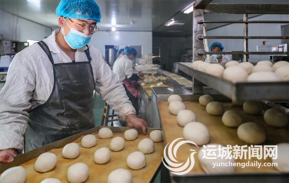 1月16日,绛县横水镇柳泉村一家食品加工企业的工人在生产馒头、花卷,供应节日市场。