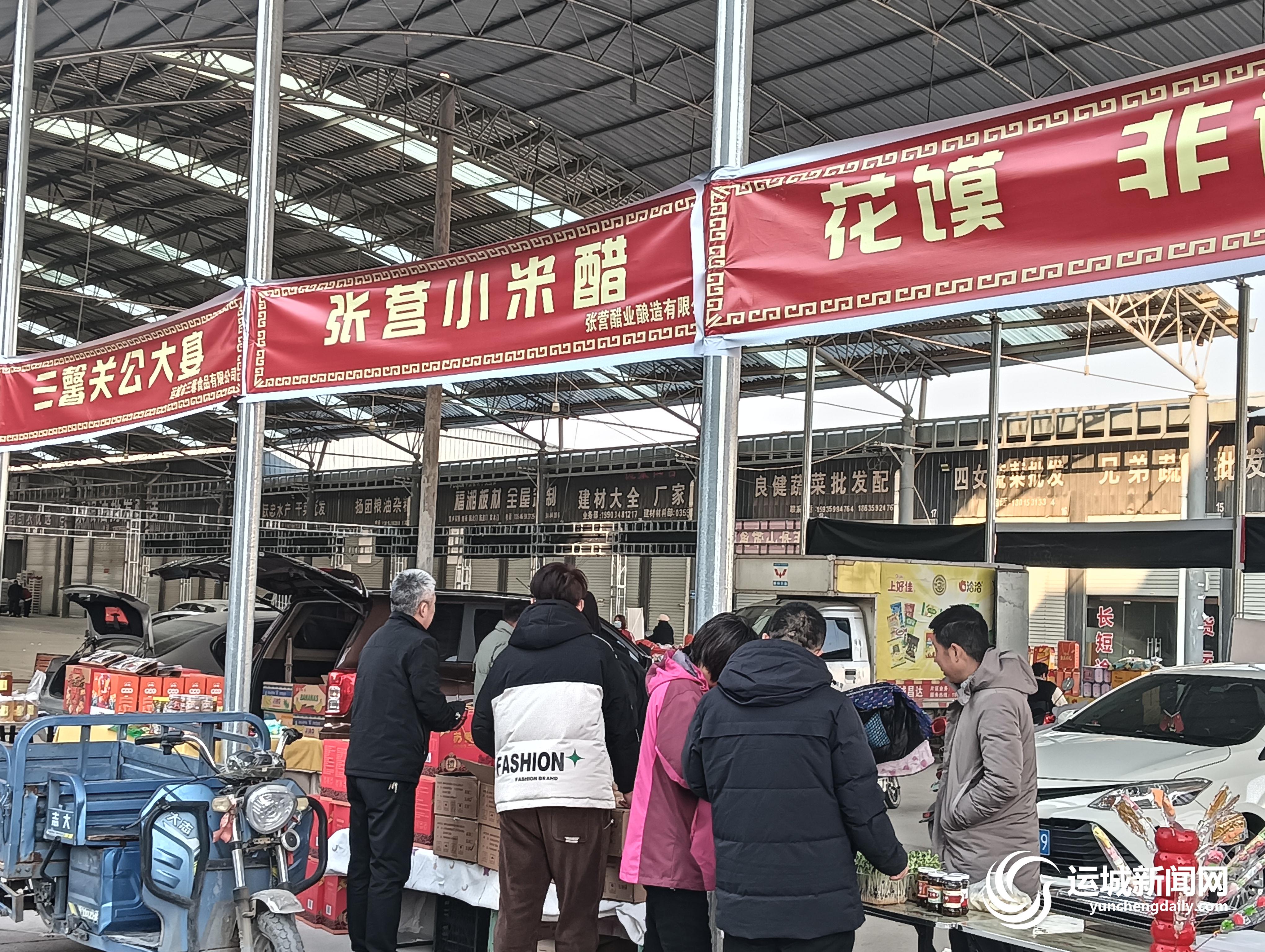 1月19日下午,盐湖区运金路综合农贸市场的年货展销会上,一个个商家在摊位前热情地吆喝着,都希望在春节即将来临之际,能够有所收获。