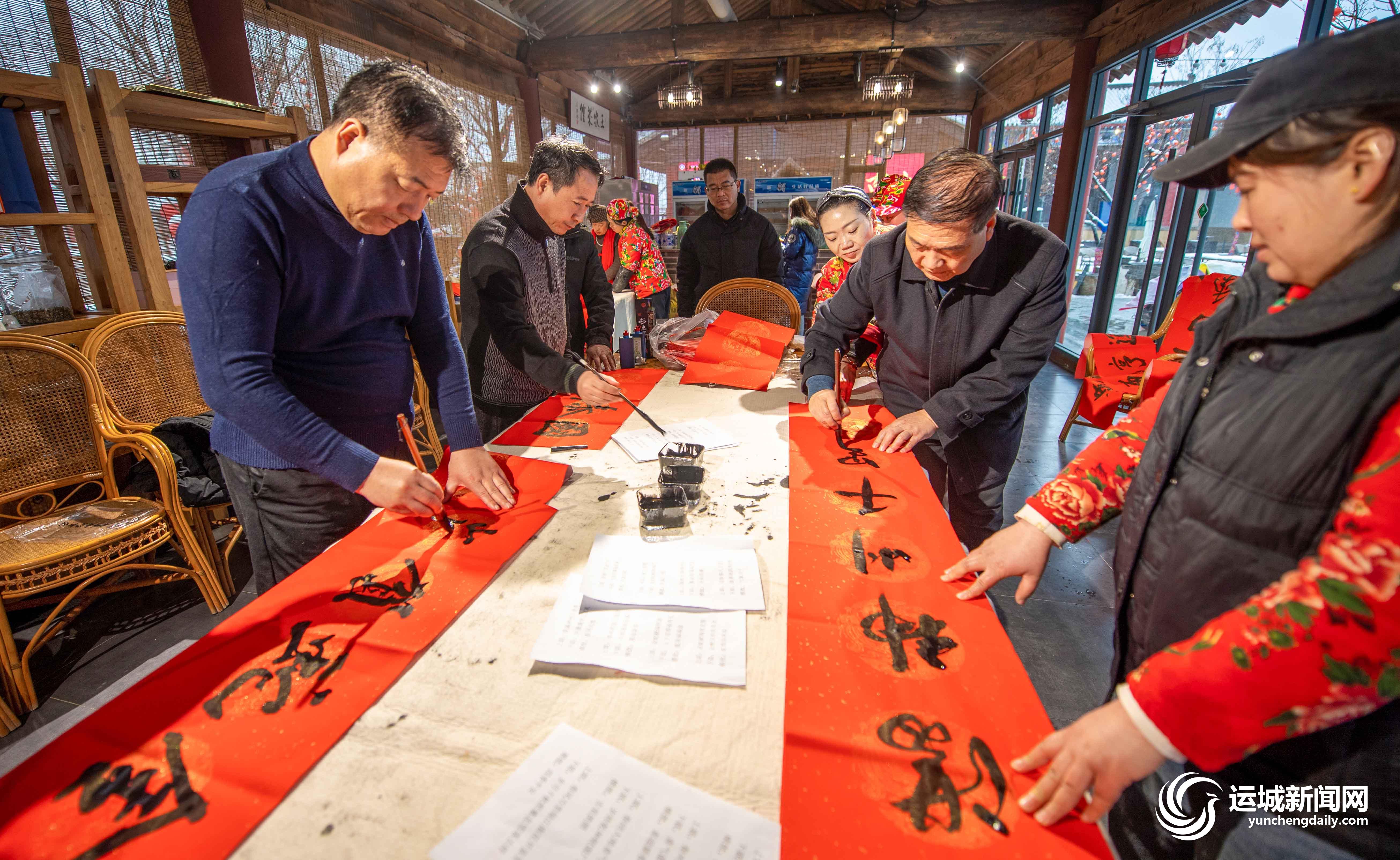 当日,岚山根·运城印象邀请运城市书法家协会的书法家们,为商户义务书写春联130余副,让大家红红火火迎新春。